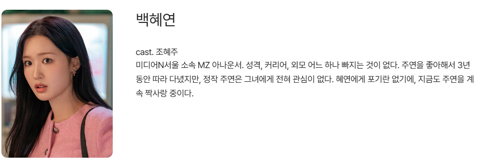 같은 방송사에서 아나운서로 일하는 은호 (cast.정혜선) 와 현오(cast.이진욱)는 8년동안 사귀었던 사이였는데요.